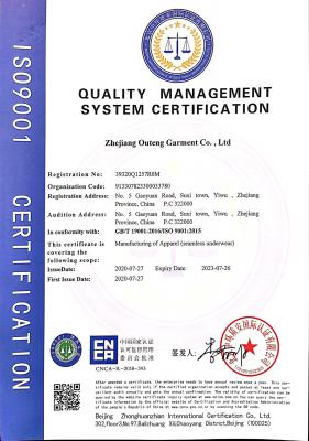 浙江歐騰服飾有限公司位于世界小商品之都-義烏。創(chuàng)立于2015年,是一家專業(yè)生產(chǎn)無縫針織運動服飾和內(nèi)衣的工貿(mào)一體企業(yè),擁有自主出口權(quán)。 工廠的占地面積約16000平方米 ,引進(jìn)了大型圣東尼、高騰等多種先進(jìn)的制衣設(shè)備300余臺。月產(chǎn)能可達(dá)90萬件。 歐騰服飾每年投入近百萬資金打樣開發(fā)新產(chǎn)品,有著一支高素質(zhì)設(shè)計、技術(shù)員工隊伍。工廠先后通過了ISO 9001質(zhì)量管理體系認(rèn)證、BSCI認(rèn)證、GRS認(rèn)證、OEKO-TEX國際生態(tài)紡織品認(rèn)證等多項專利檢測報告。可提供OEM&ODM服務(wù)。歐騰服飾以一套完整、科學(xué)的質(zhì)量管理體系,生產(chǎn)的服裝從原材料紗線到成衣,質(zhì)量完全能夠滿足國內(nèi)、國際質(zhì)量要求。獲得了客戶一致好評。工廠先后獲得省科技型企業(yè)、國家高新企業(yè)、義烏市誠信講信用單位、規(guī)上企業(yè)、信用AAA級等榮譽。